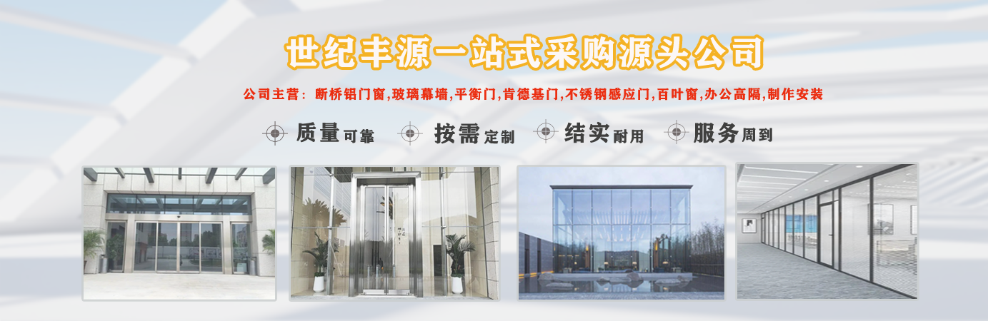 天津世紀豐源門窗有限公司從事斷橋鋁門窗,玻璃幕墻,平衡門,肯德基門,不銹鋼感應門,百葉窗,辦公高隔,制作安裝一站式訂制生產及配套服務等?! 」咀猿闪⒁詠?,始終堅持以人才為本、誠信立業(yè)的經營原則,薈萃業(yè)界精英,成熟的技術、管理方法及企業(yè)經驗與國內企業(yè)的具體實際相結合,為企業(yè)供給各個方面的解決方案,使企業(yè)在激烈的市場競爭中始終堅持競爭力,實現企業(yè)快速、穩(wěn)定地發(fā)展?! ≠|量好、服務好、才能信譽好,公司已在諸多領域取得輝煌成績,愿意成為您可信賴的長期合作伙伴?! ∽屛覀償y手同行,共同實現“讓普通老百姓都用得上高端門窗”...